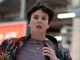 Tourists visiting the Derry Girls mural give their opinion on a recently installed awning on the wall.
